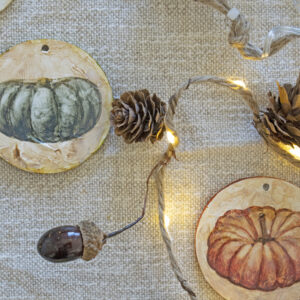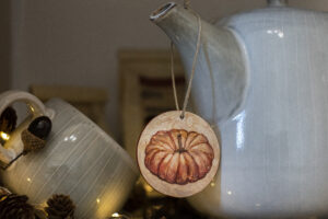 From the “Pumpkin Collection” I painted this little pumpkin with watercolors on a round piece of wood. Its colors and shape make it one of a kind, bringing a cozy touch of autumn. Each side is hand-painted with care and love.