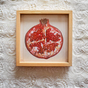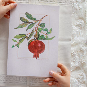 Small pomegranate studies, originally painted in watercolor, celebrate the fruit’s rich symbolism and natural beauty. Each piece brings a touch of elegance and intense color to any home or interior style. *The print presented in the image is unframed”