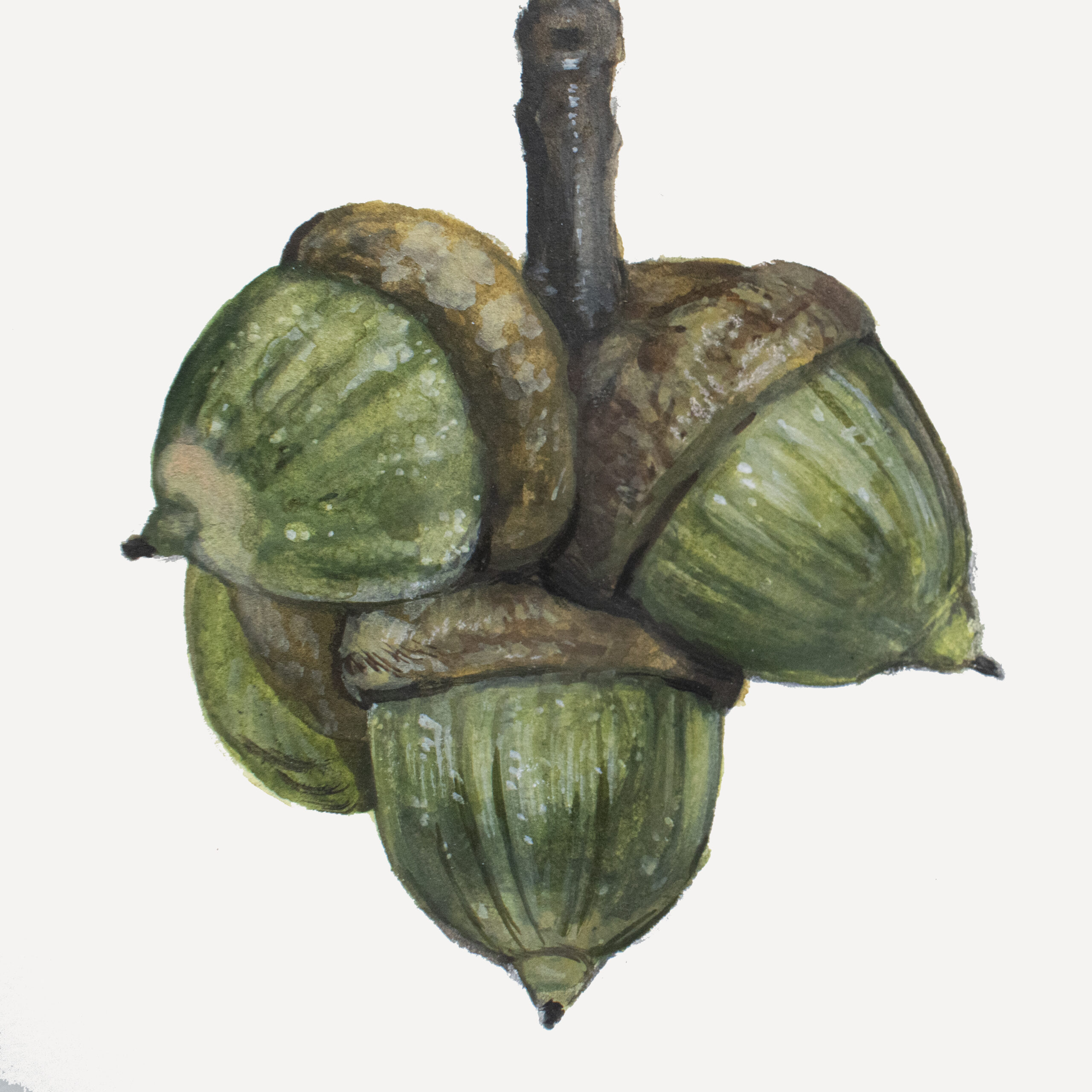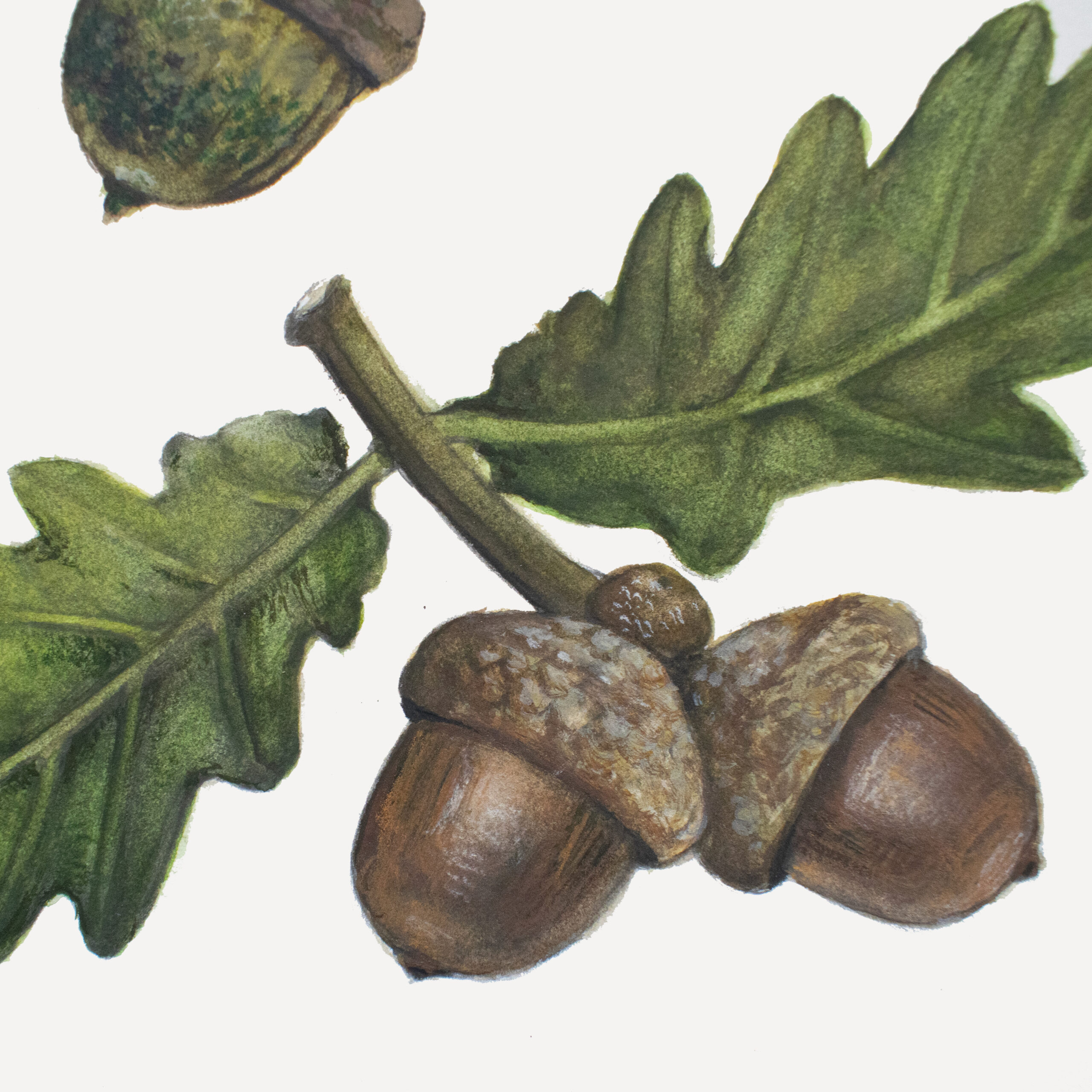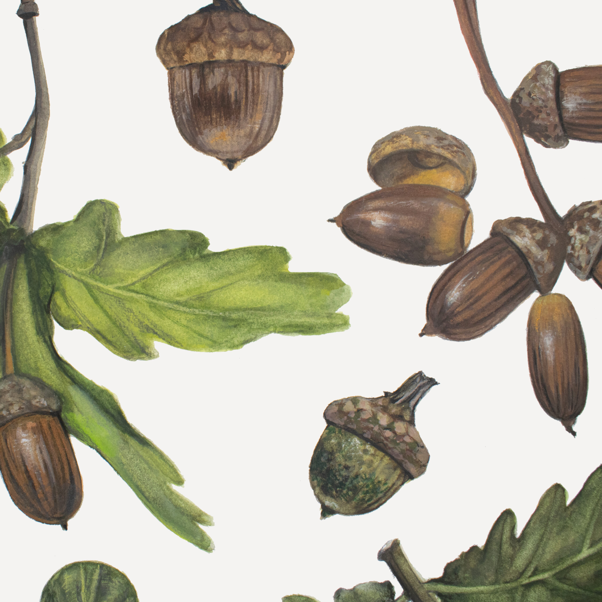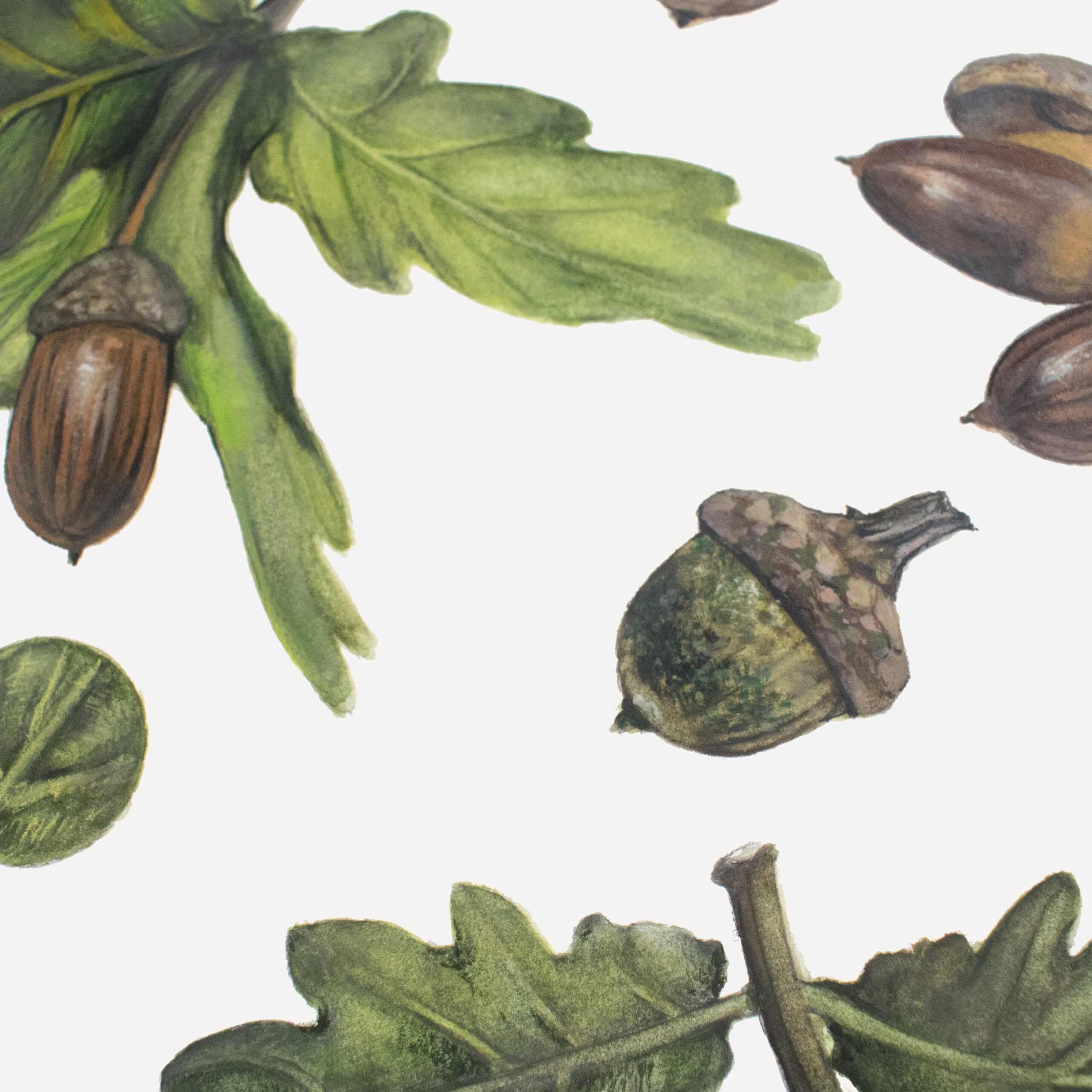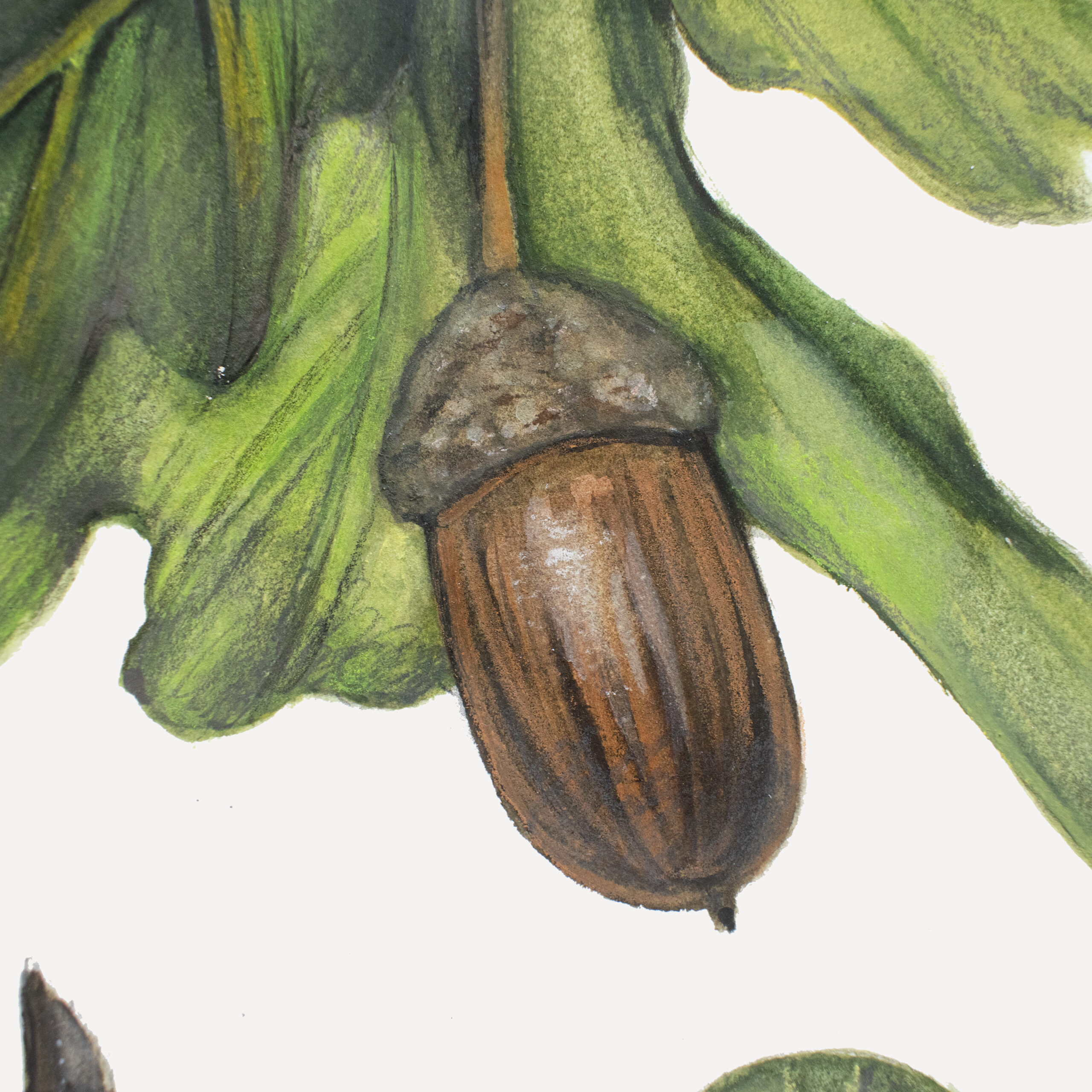 This watercolor painting showcases the humble acorn with subtle textures and warm, earthy shades. A peaceful, natural piece that adds a touch of woodland charm and simplicity to any room. Hand-painted and measures 38×42 cm.
