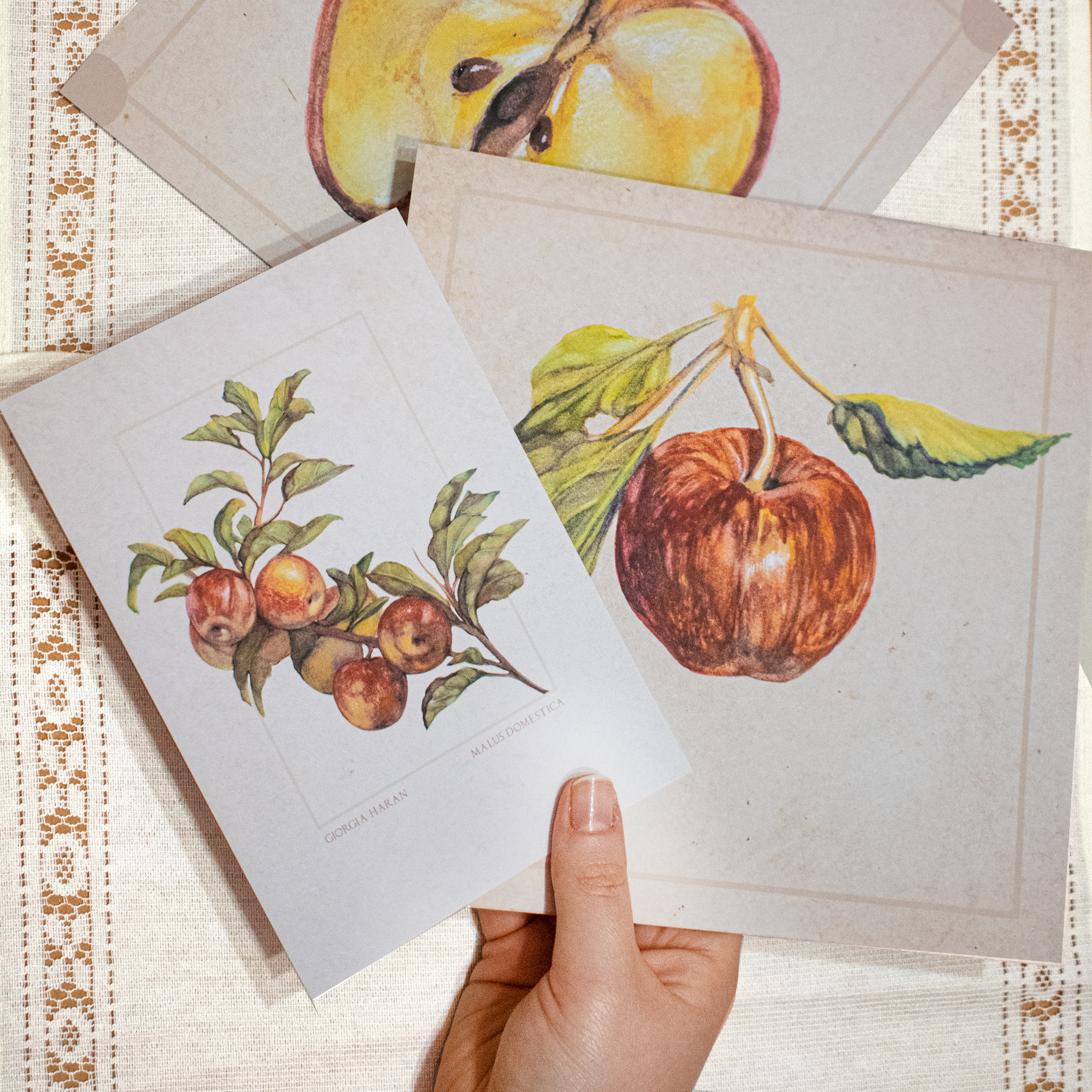 A simple apple print in warm tones with a clean, classic feel.