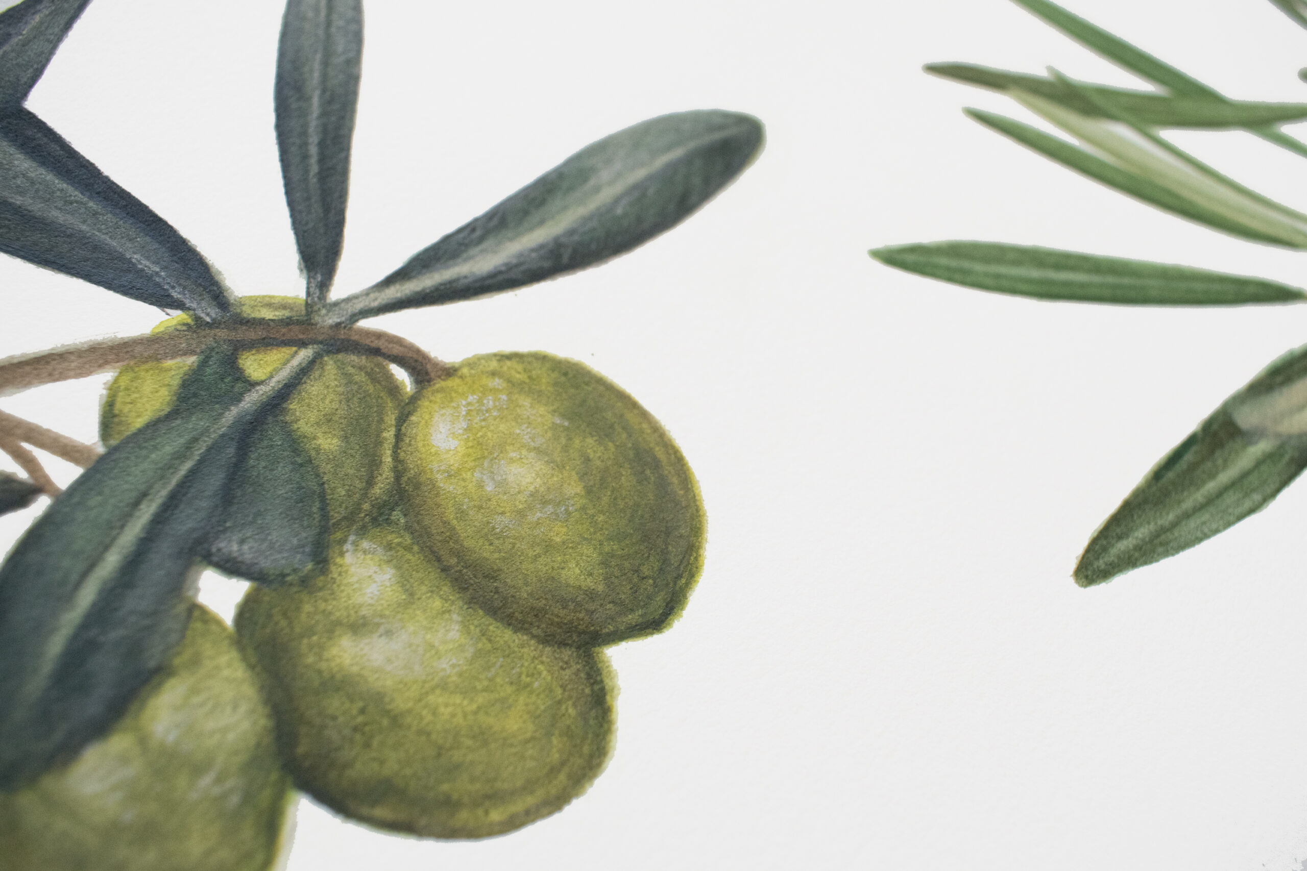 This watercolor painting brings green olives to life with subtle shades of green and soft textures, capturing their simple, natural beauty. A calm, organic piece that adds a touch of Mediterranean warmth to any kitchen, studio, or dining space. Hand-painted and measures 42×56 cm.