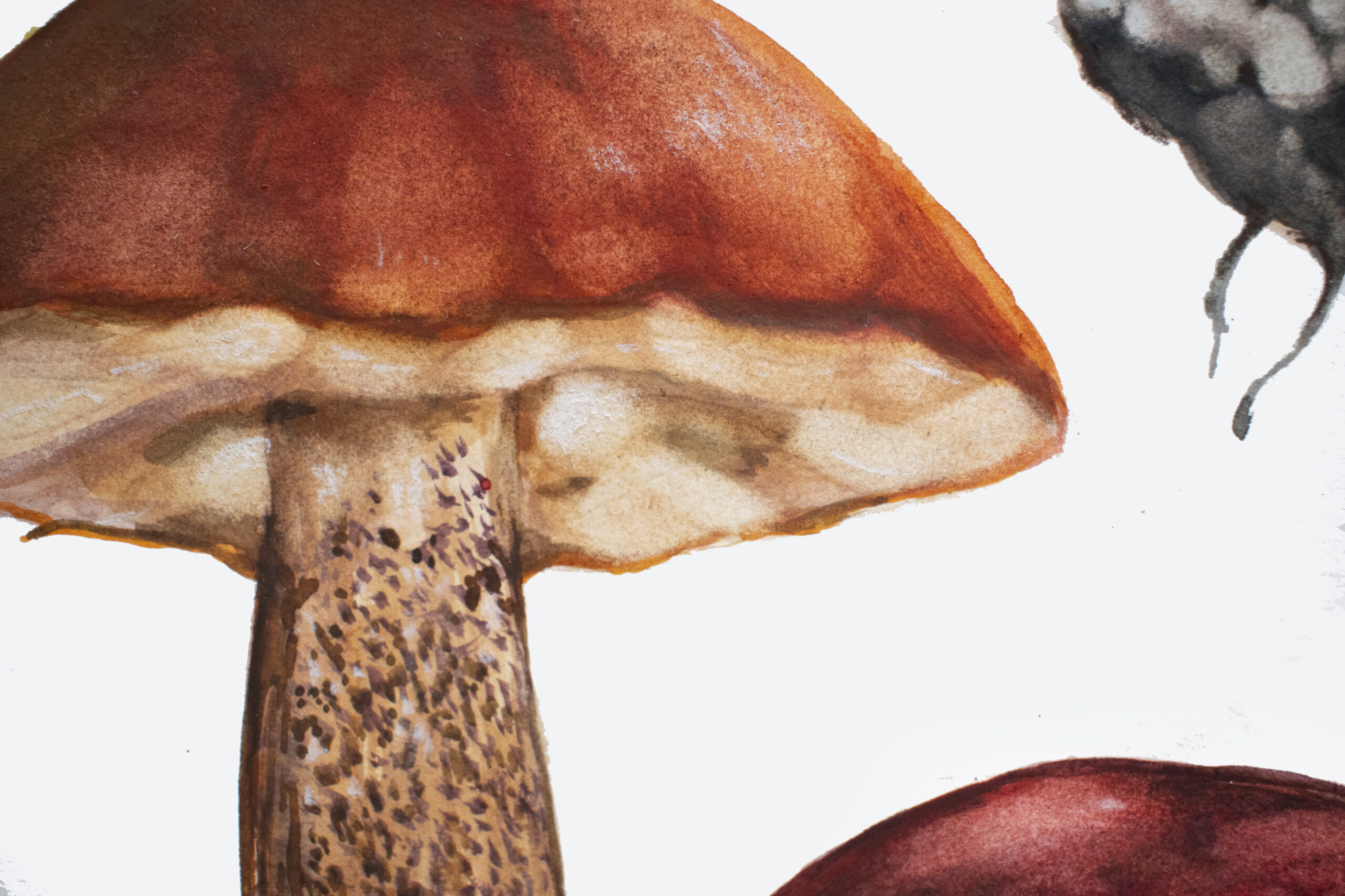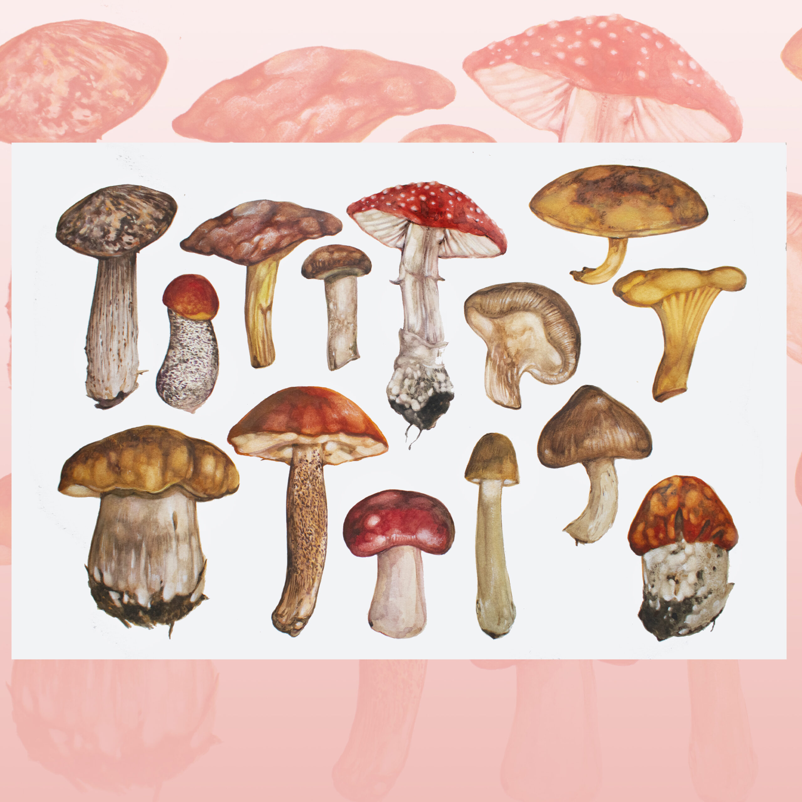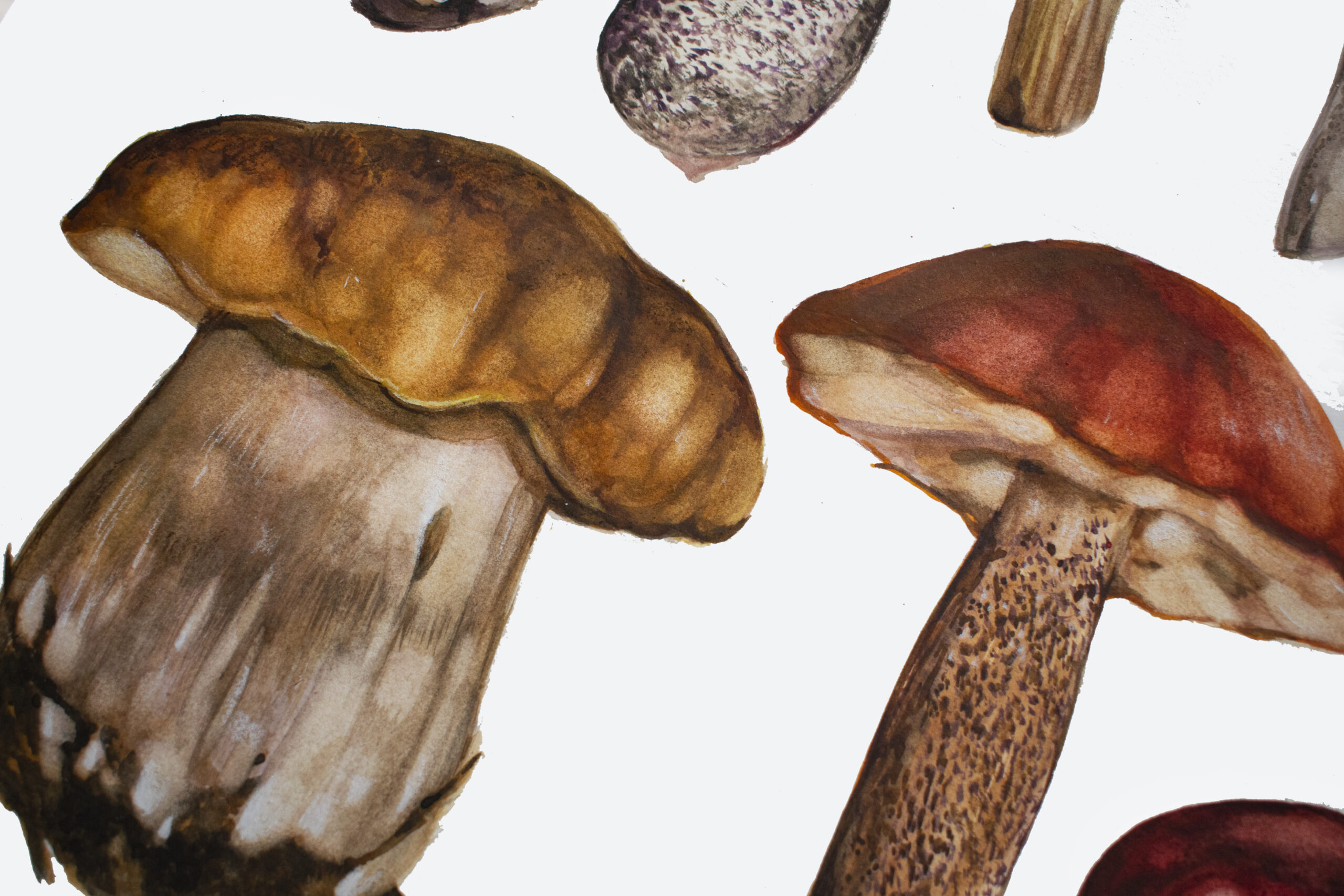 This hand-painted watercolor brings mushrooms to life with gentle detail and earthy tones, capturing their quiet presence and natural texture. A peaceful, organic piece that adds a touch of woodland calm to any space. Painted on paper and measures 42×56 cm.