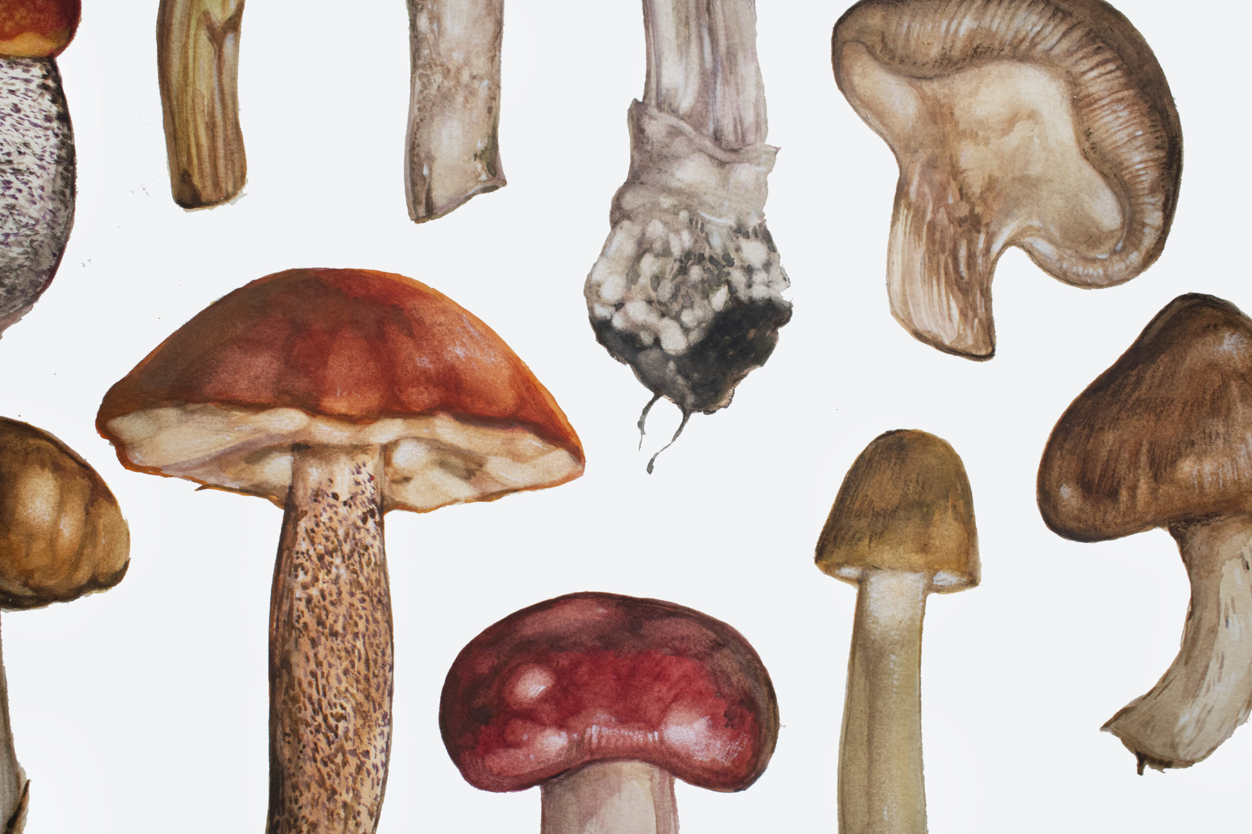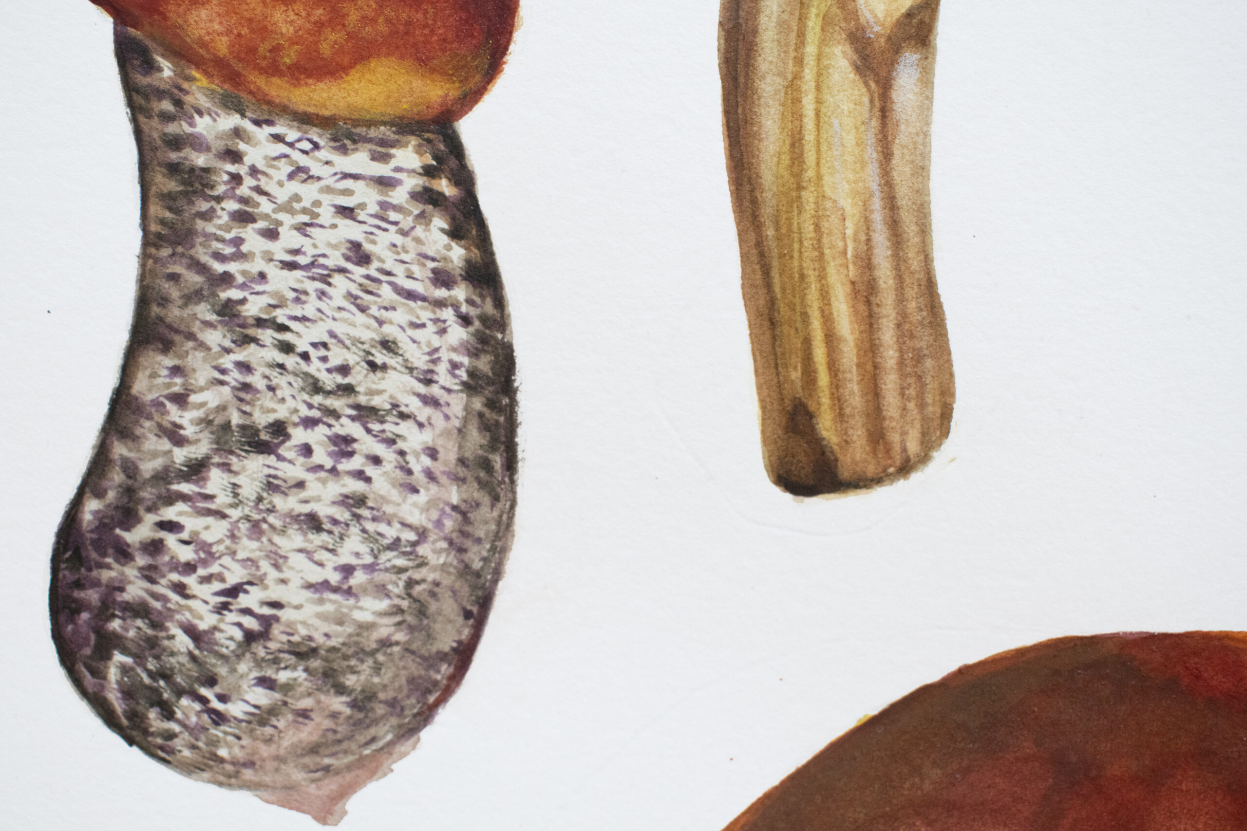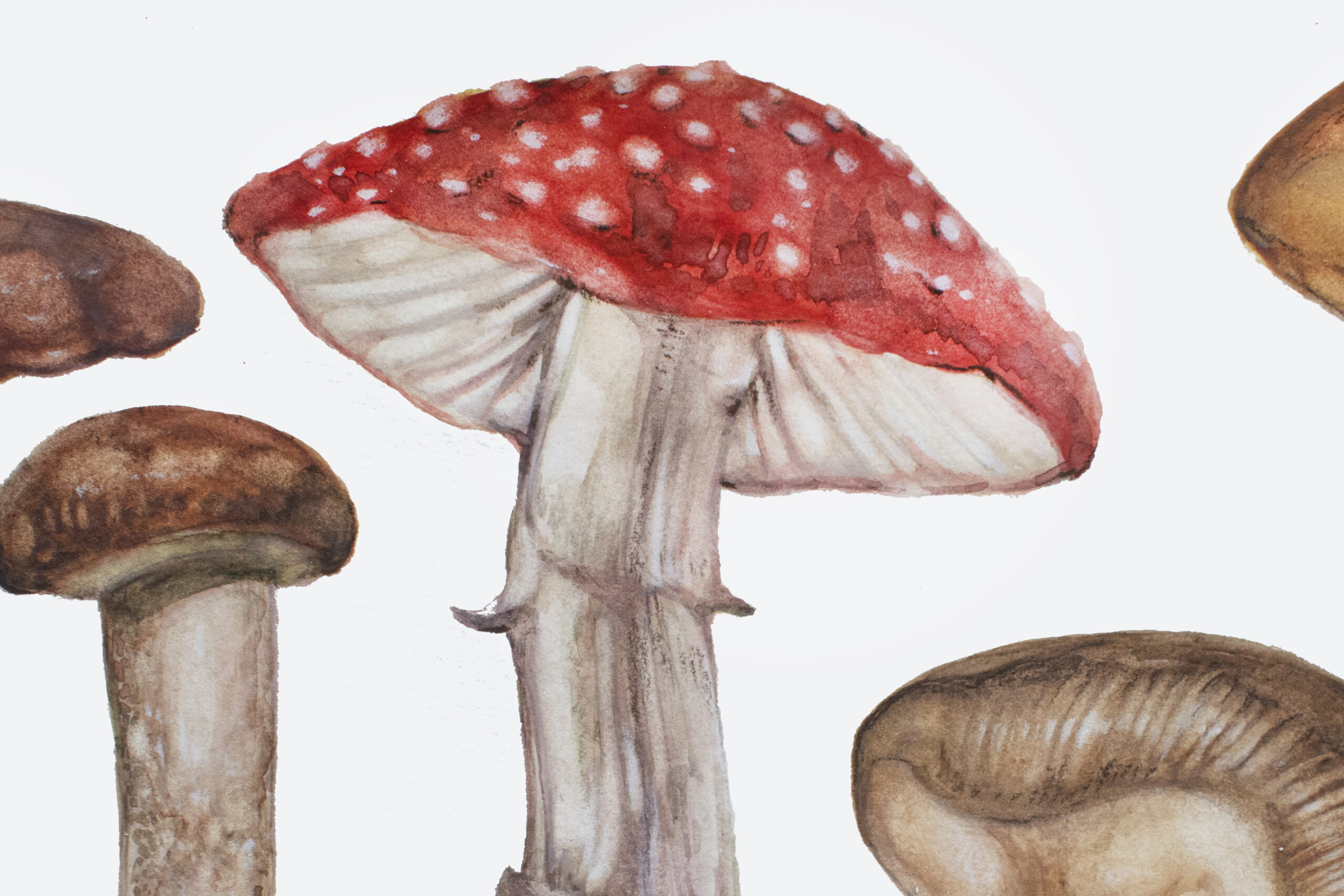 This hand-painted watercolor brings mushrooms to life with gentle detail and earthy tones, capturing their quiet presence and natural texture. A peaceful, organic piece that adds a touch of woodland calm to any space. Painted on paper and measures 42×56 cm.