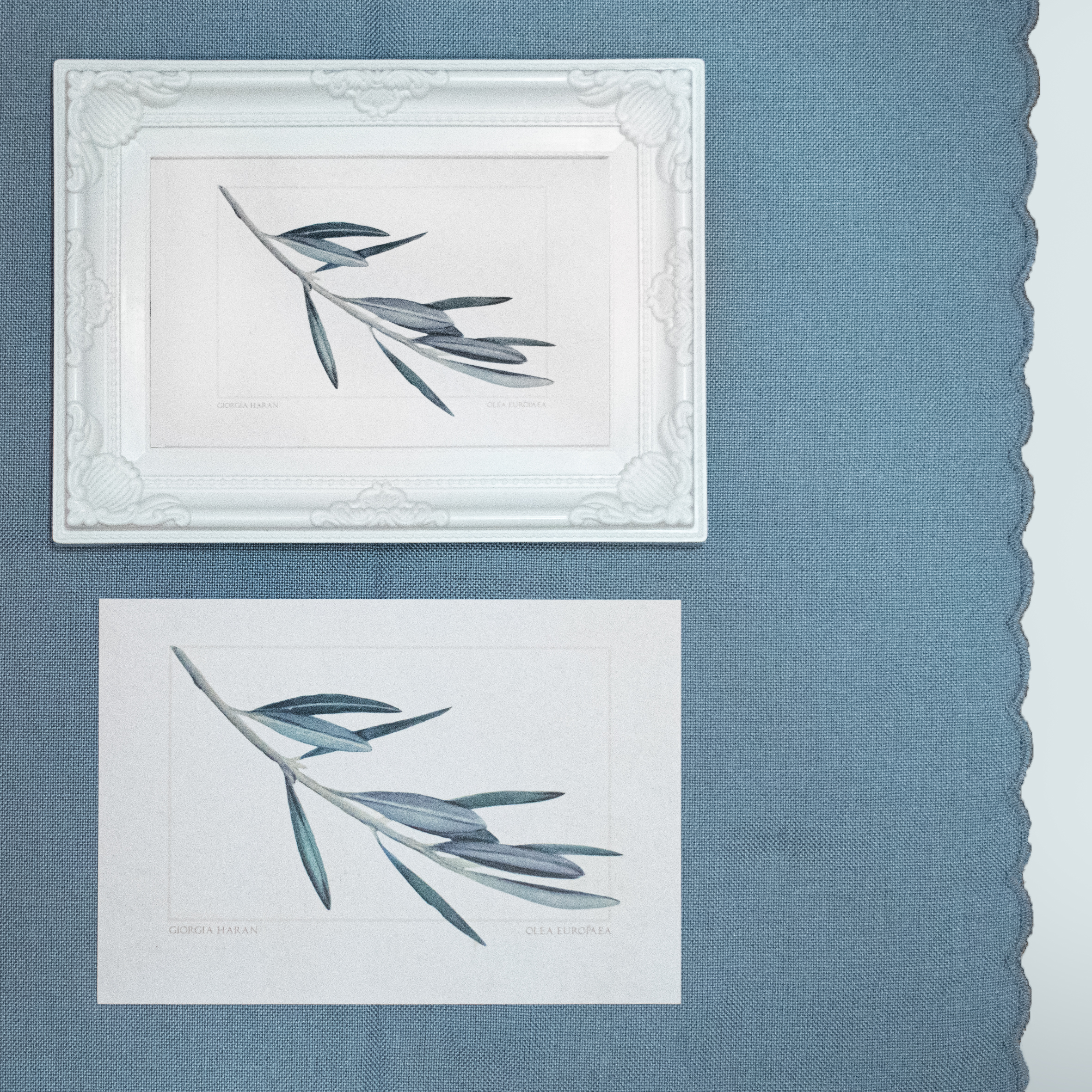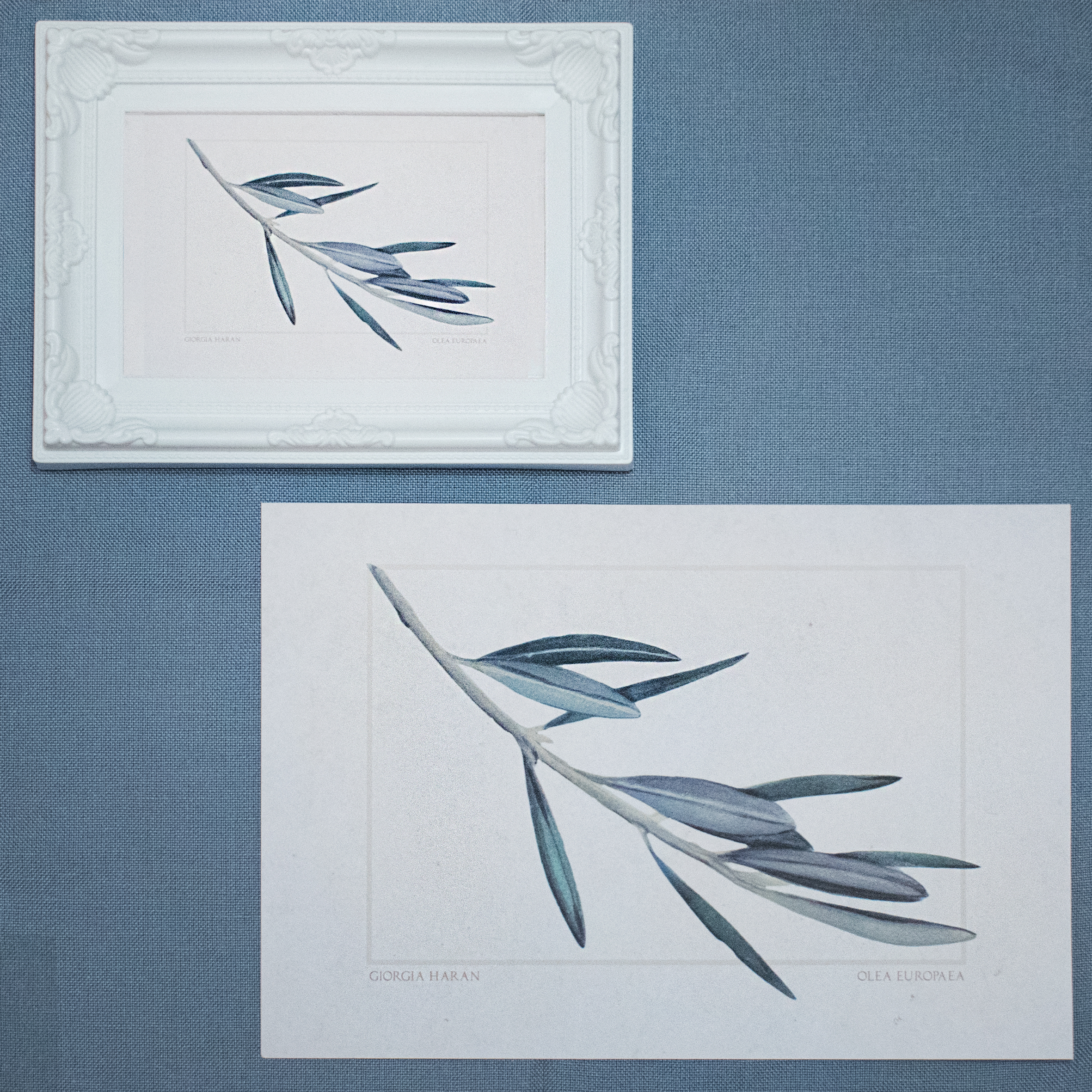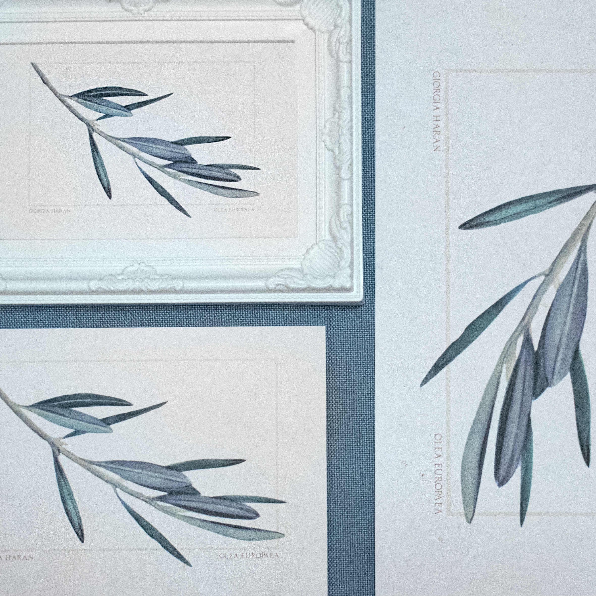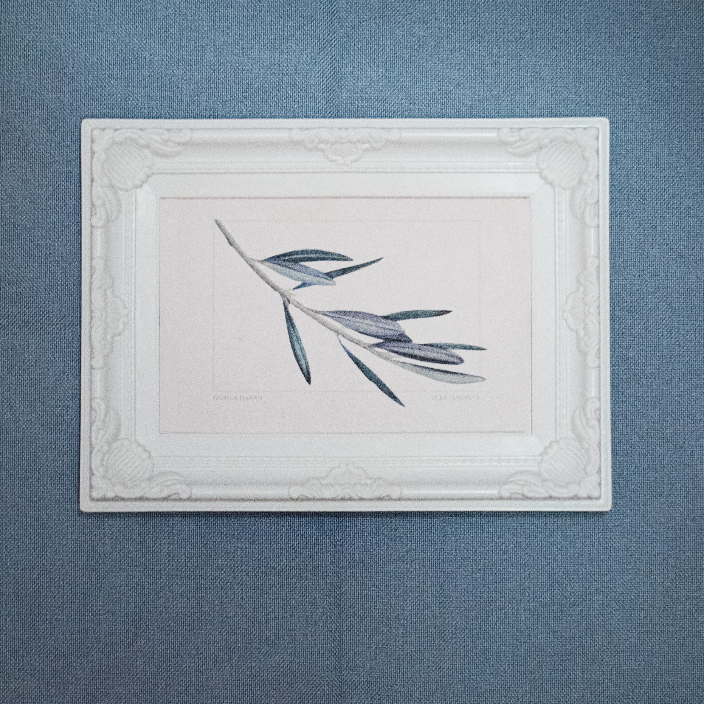 An olive branch painted in soft, natural greens. It brings a relaxed, Mediterranean feel to any space.
